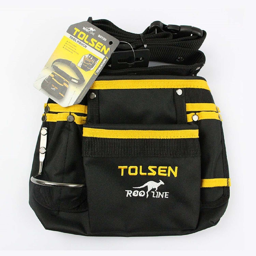 Tolsen 80120 là mẫu túi đeo đồ nghề nhỏ gọn, tiện lợi được thiết kế cho thợ điện, thợ cơ khí, thợ sửa chữa hoặc người dùng gia đình cần mang theo một số dụng cụ thiết yếu khi làm việc. Sản phẩm được may bằng vải bạt bộ đội dày dặn, chống mài mòn và chịu tải tốt, có 11 ngăn nhỏ cùng ngăn riêng cho búa và thước, giúp sắp xếp dụng cụ ngăn nắp, thao tác nhanh và thuận tiện.