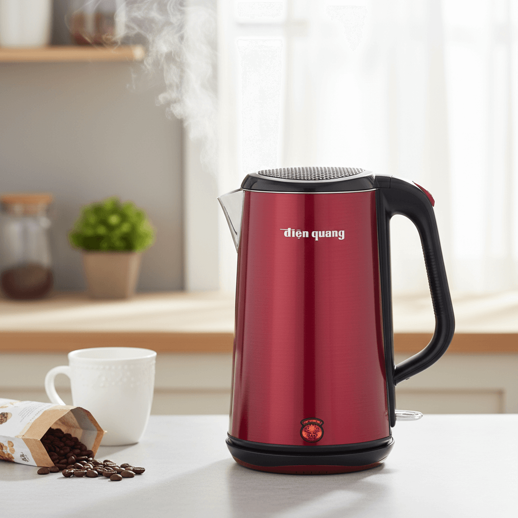 Ấm đun nước cao cấp Điện Quang ĐQ EKT08 1818 là sản phẩm gia dụng hiện đại, kết hợp giữa thiết kế sang trọng, chất liệu bền bỉ và tính năng an toàn thông minh. Với công suất mạnh mẽ 1800W, dung tích lớn 1.8 lít và vỏ 3 lớp cao cấp, sản phẩm không chỉ giúp đun nước nhanh chóng mà còn đảm bảo độ bền và an toàn tuyệt đối cho người sử dụng.