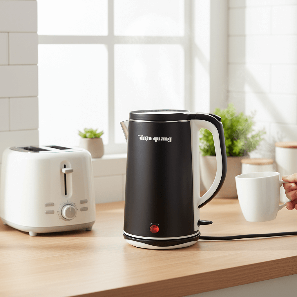 Ấm đun nước cao cấp Điện Quang ĐQ EKT11 1818 BL là lựa chọn hoàn hảo cho gia đình hiện đại nhờ sự kết hợp giữa thiết kế sang trọng, công suất mạnh mẽ và tính năng an toàn vượt trội. Với dung tích lớn 1.8 lít, thân inox 304 cao cấp và vỏ 2 lớp cách nhiệt, sản phẩm vừa bền đẹp, vừa đảm bảo an toàn tuyệt đối khi sử dụng.