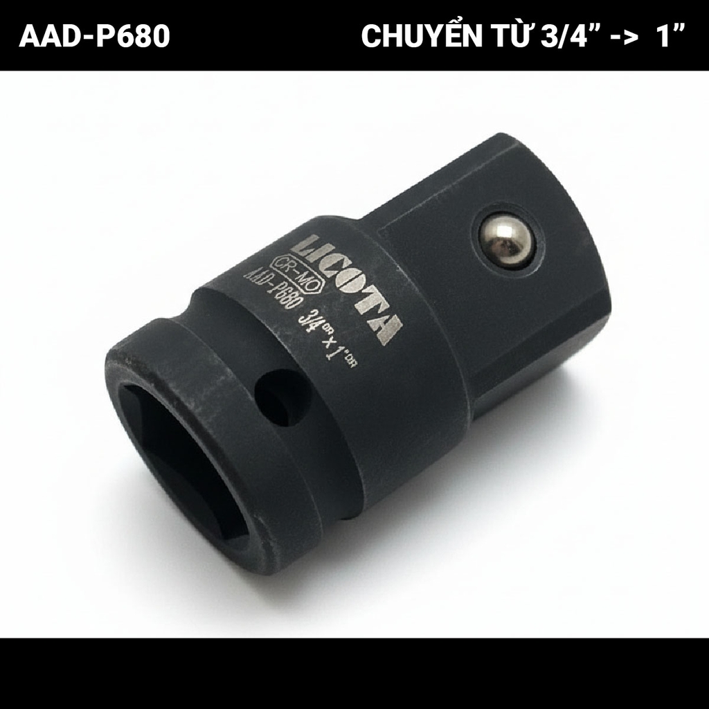 Đầu biến (chuyển) Licota AAD-P680 là phụ kiện chuyên dụng giúp chuyển đổi đầu nối tay siết, cần siết lực hoặc bộ tuýp từ 3/4 inch lên 1 inch. Sản phẩm mang lại sự linh hoạt cho người thợ khi thao tác với nhiều loại đầu tuýp khác nhau, đồng thời giúp tiết kiệm chi phí và tối ưu hiệu quả làm việc.