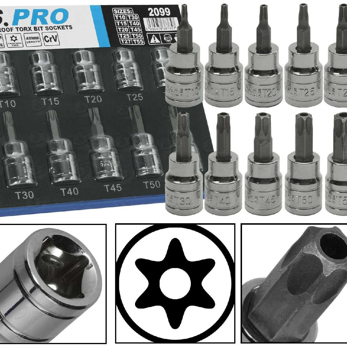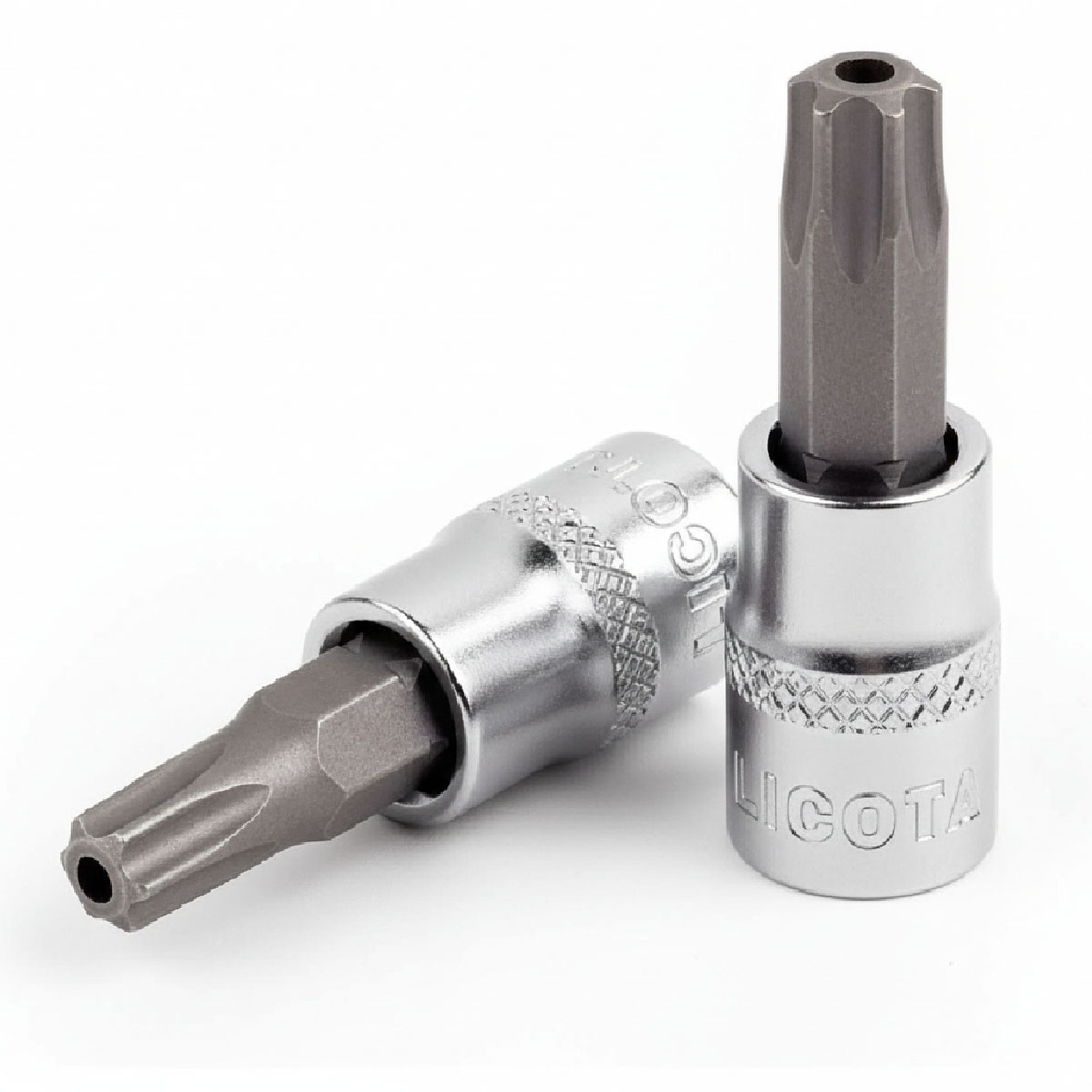 Bộ đầu tuýp Licota có đầu vuông 1/2 inch (12.7mm), tương thích với hầu hết các tay siết, cần xiết lực hoặc súng vặn ốc, giúp thao tác nhanh và an toàn. Sản phẩm gồm nhiều kích cỡ đầu bông mai T20, T25, T27, T30, T40, T45, T50, T55 – đáp ứng đa dạng nhu cầu sử dụng trong gara, xưởng cơ khí hoặc nhà máy sản xuất.