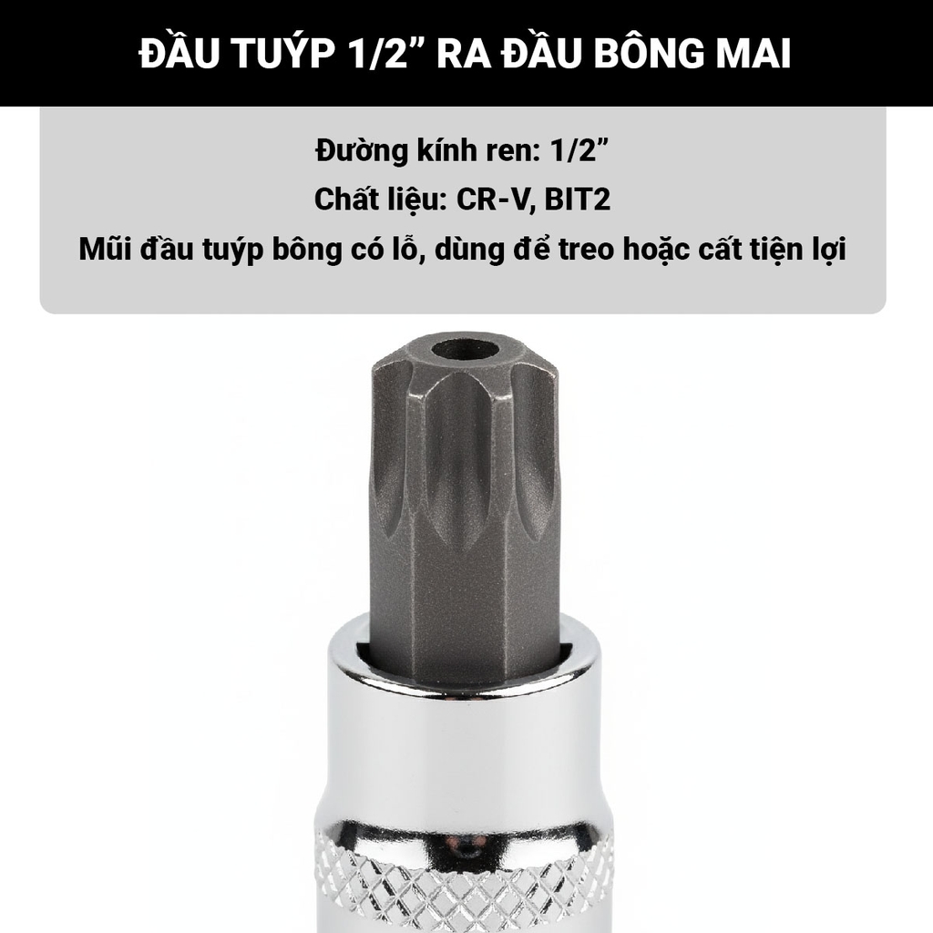 Đầu tuýp 1/2 inch ra đầu bông mai Licota T20 – T55