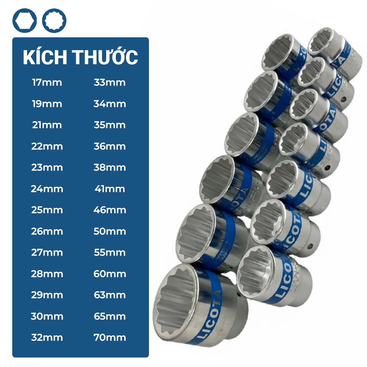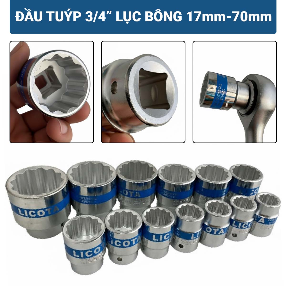Đầu tuýp 3/4" (bông+lục) LICOTA 17mm-70mm