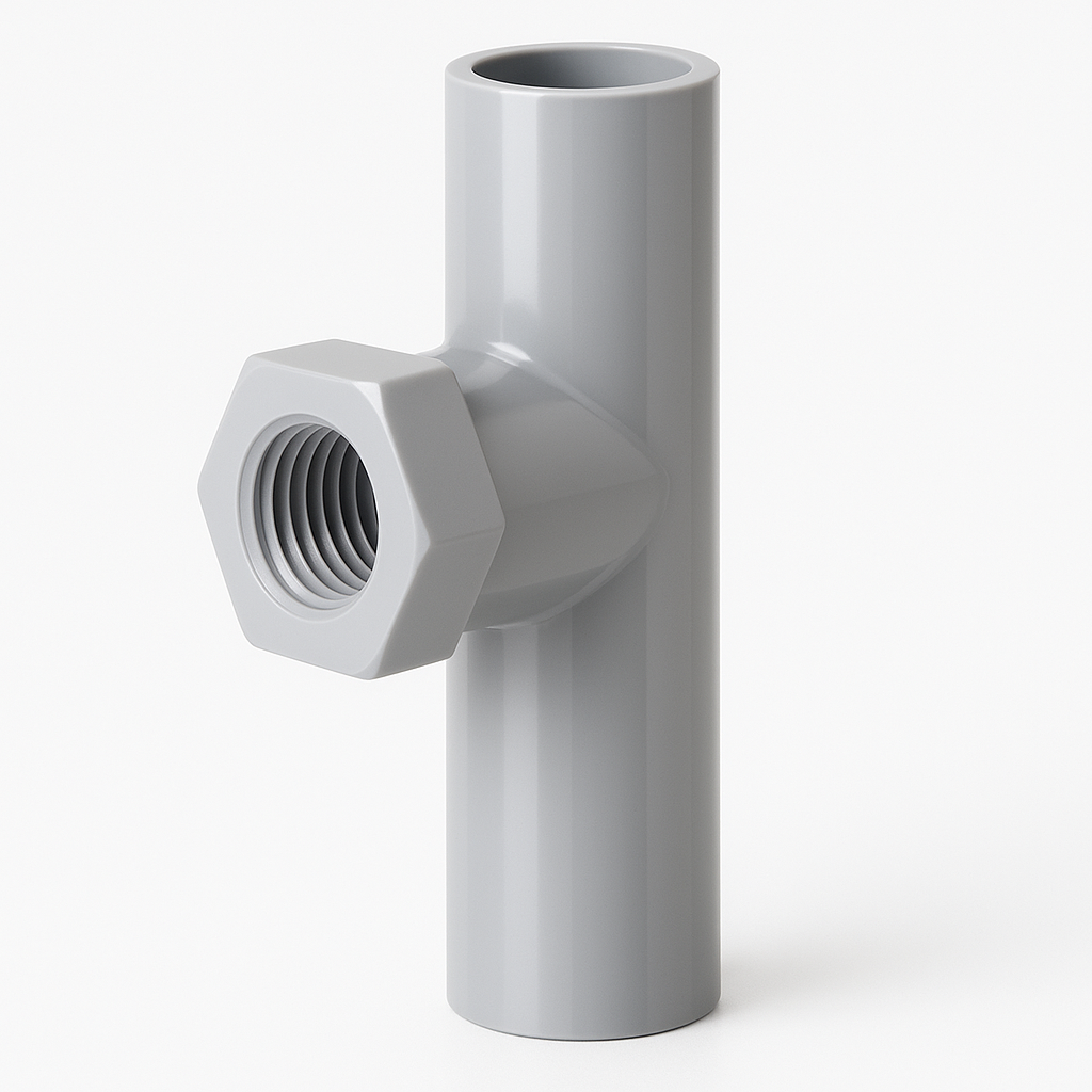 T ren trong và tê ren trong thau là phụ kiện nối ống PVC-U hệ inch, dùng để chia nhánh đường ống và chuyển đổi từ ống trơn sang ren trong (đồng hoặc nhựa). Sản phẩm kết hợp đầu ren (bằng đồng hoặc nhựa PVC) và thân nhựa, giúp kết nối thiết bị, van, vòi hoặc phụ kiện có phần ren ngoài một cách chắc chắn và kín khít.