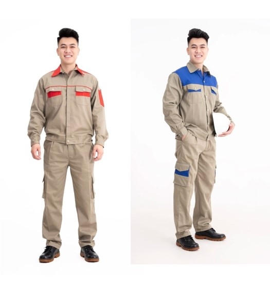 Thiết kế ghi đậm phối màu hiện đại, vừa mang lại sự chuyên nghiệp, gọn gàng cho người lao động, vừa tạo điểm nhấn thẩm mỹ cho doanh nghiệp. Vải kaki 3/1 nổi bật với ưu điểm bền màu, khó sờn, ít nhăn, thích hợp sử dụng lâu dài và giặt giũ thường xuyên.