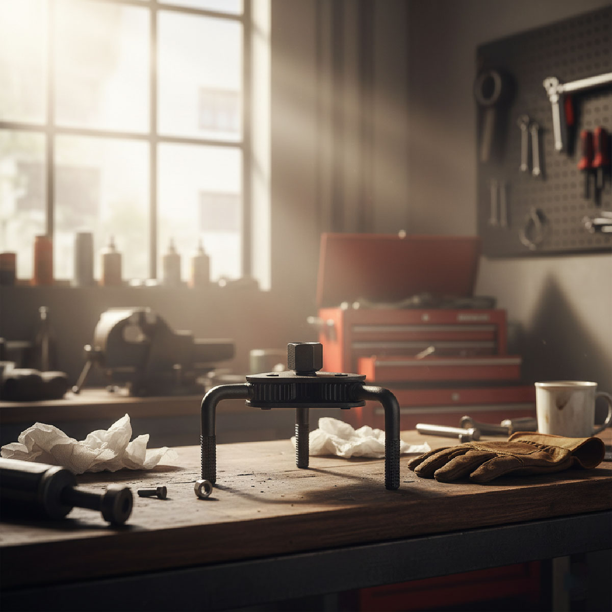 Cảo được chế tạo từ thép hợp kim CR-MO (Chrome Molybdenum) – loại thép có độ cứng và khả năng chịu lực kéo vượt trội, giúp dụng cụ hoạt động ổn định trong điều kiện tải nặng. Phần 3 chân tròn phủ gai chống trượt ôm sát nắp lọc dầu, giúp bám chặt, chống tuột và hạn chế làm trầy xước bề mặt chi tiết trong quá trình thao tác.