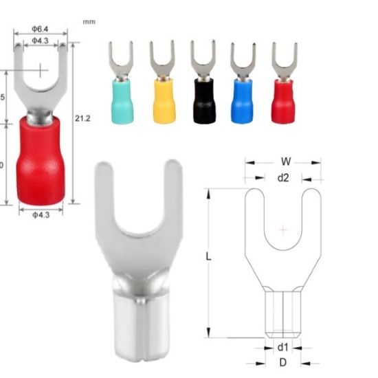 Cos chìa bọc nhựa (SV) là loại đầu cos chĩa chữ U có vỏ cách điện, dùng để bấm vào dây điện và đấu nối trực tiếp vào ốc vít, cọc đấu, domino mà không cần tháo rời hoàn toàn bu lông. Thiết kế chĩa giúp thao tác nhanh, thuận tiện cho lắp đặt và bảo trì.