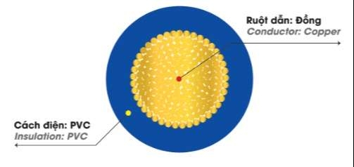 Ưu điểm: dẫn điện ổn định, cách điện an toàn, mềm dễ lắp đặt, chịu nhiệt 70°C.