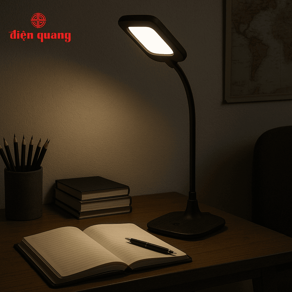 Đèn bàn LED chống cận thị, ánh sáng trắng dịu, bảo vệ mắt.