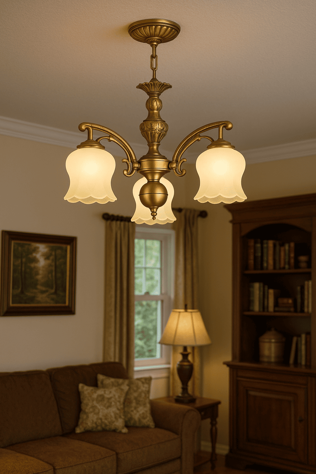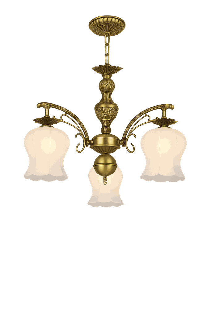 Thiết kế trang nhã: Gồm 3 tay đèn bố trí cân đối, chao thủy tinh trong suốt tán sáng lung linh, tạo điểm nhấn nhẹ nhàng nhưng cuốn hút.