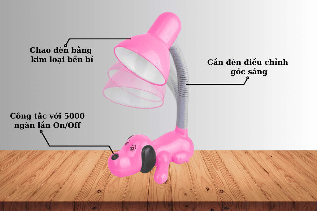 Đèn bàn học chống cận Cún Hồng ĐQ DKL06 (4W) là sự lựa chọn hoàn hảo cho góc học tập của bé. Với thiết kế ngộ nghĩnh hình chú cún hồng đáng yêu, ánh sáng dịu nhẹ bảo vệ mắt và độ bền vượt trội, sản phẩm giúp bé thêm hứng thú khi học tập và vui chơi.