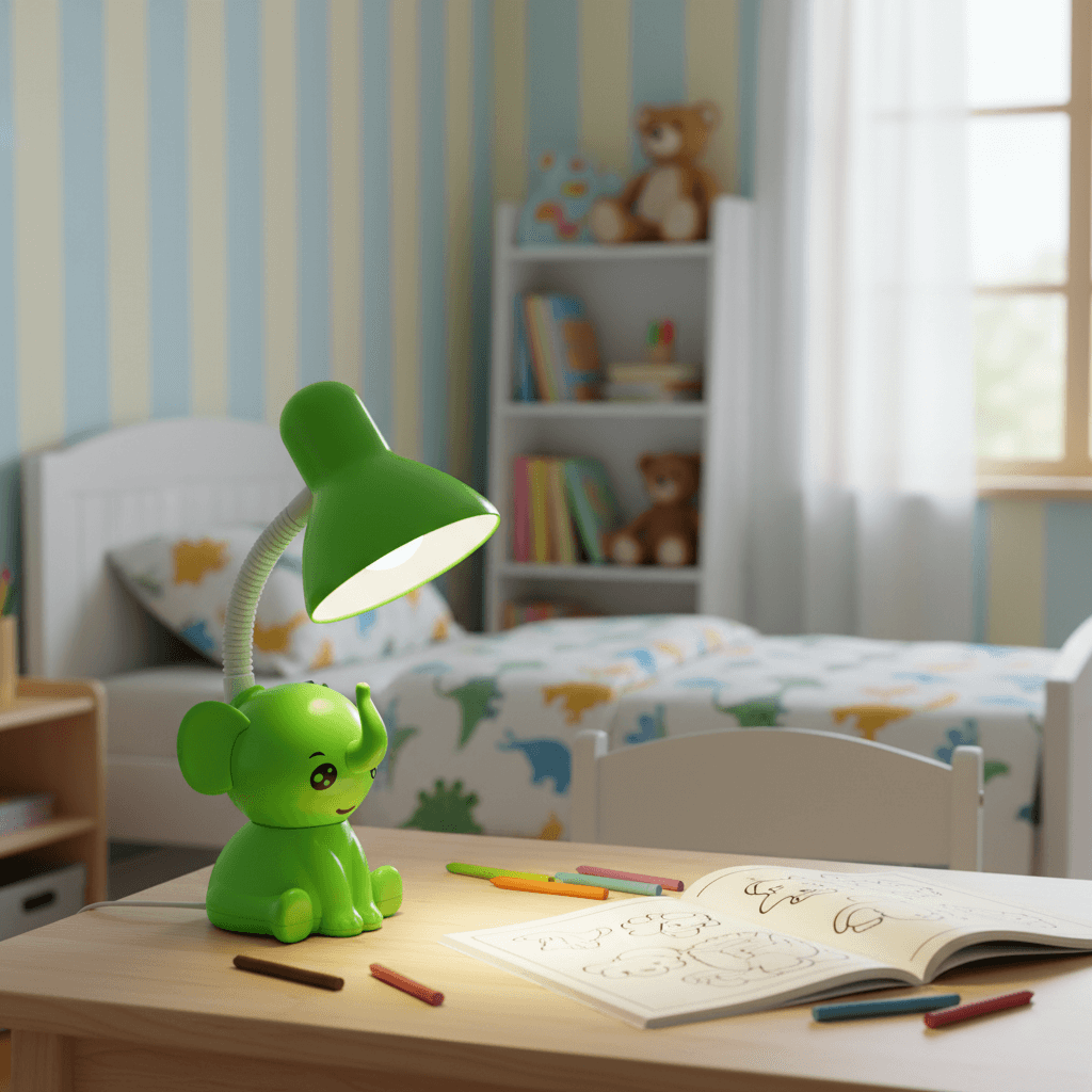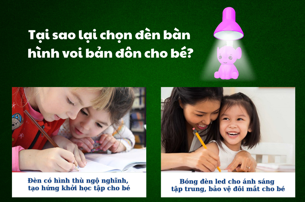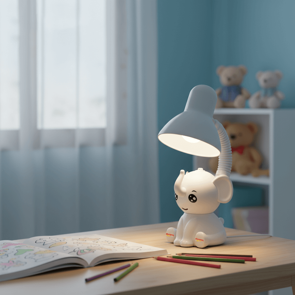 Đèn bàn học chống cận ĐQ DKL18 (5W, bóng LED) được thiết kế hình voi con ngộ nghĩnh, mang đến ánh sáng dịu nhẹ bảo vệ mắt và tạo cảm hứng học tập cho bé. Đây không chỉ là một chiếc đèn học mà còn là người bạn đáng yêu đồng hành cùng bé yêu trong từng buổi học.