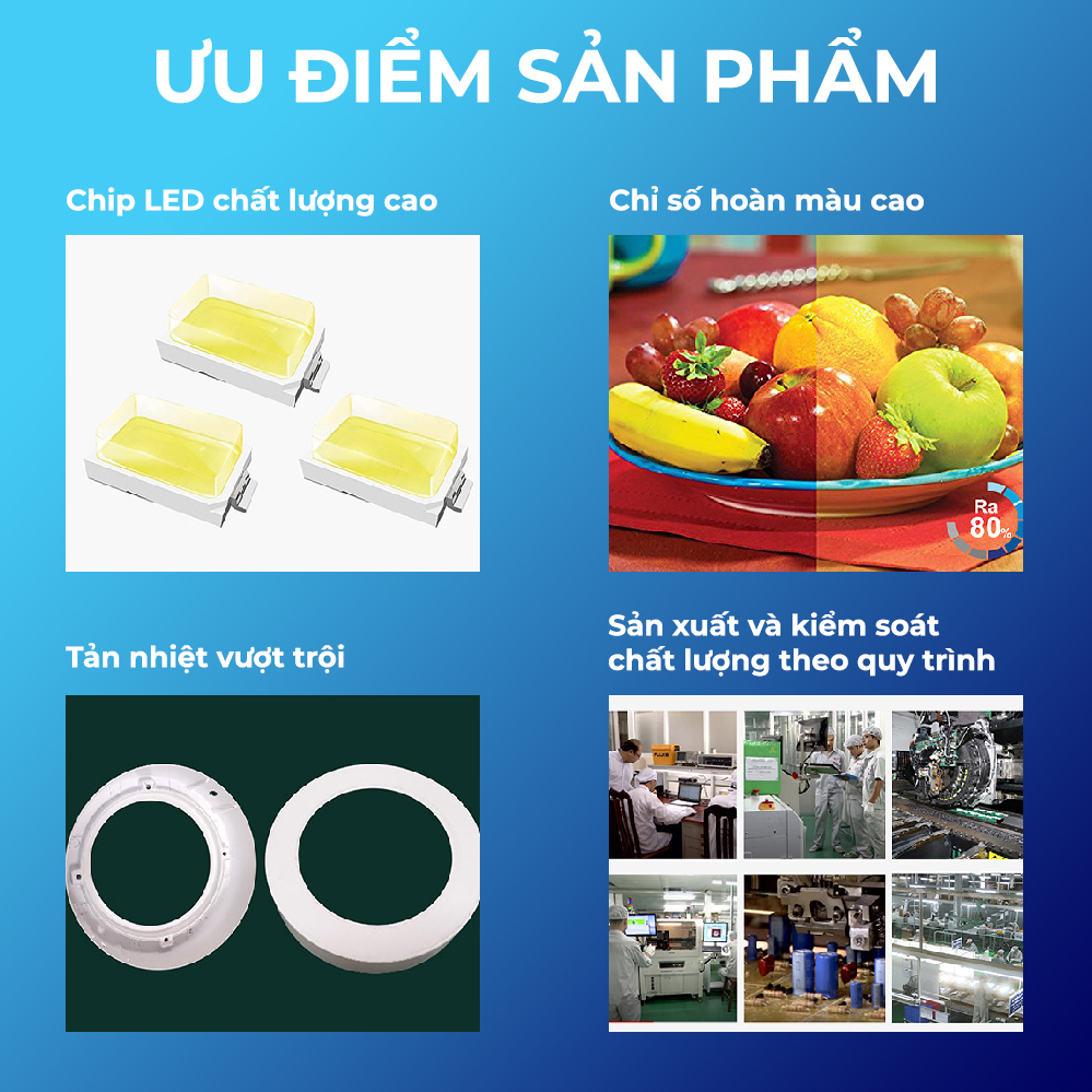 CRI > 80: tái hiện màu sắc tự nhiên, trung thực.