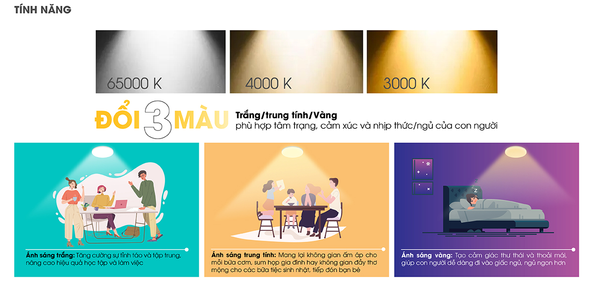 Phù hợp chiếu sáng cho phòng khách, phòng ngủ, hành lang, văn phòng, cửa hàng.