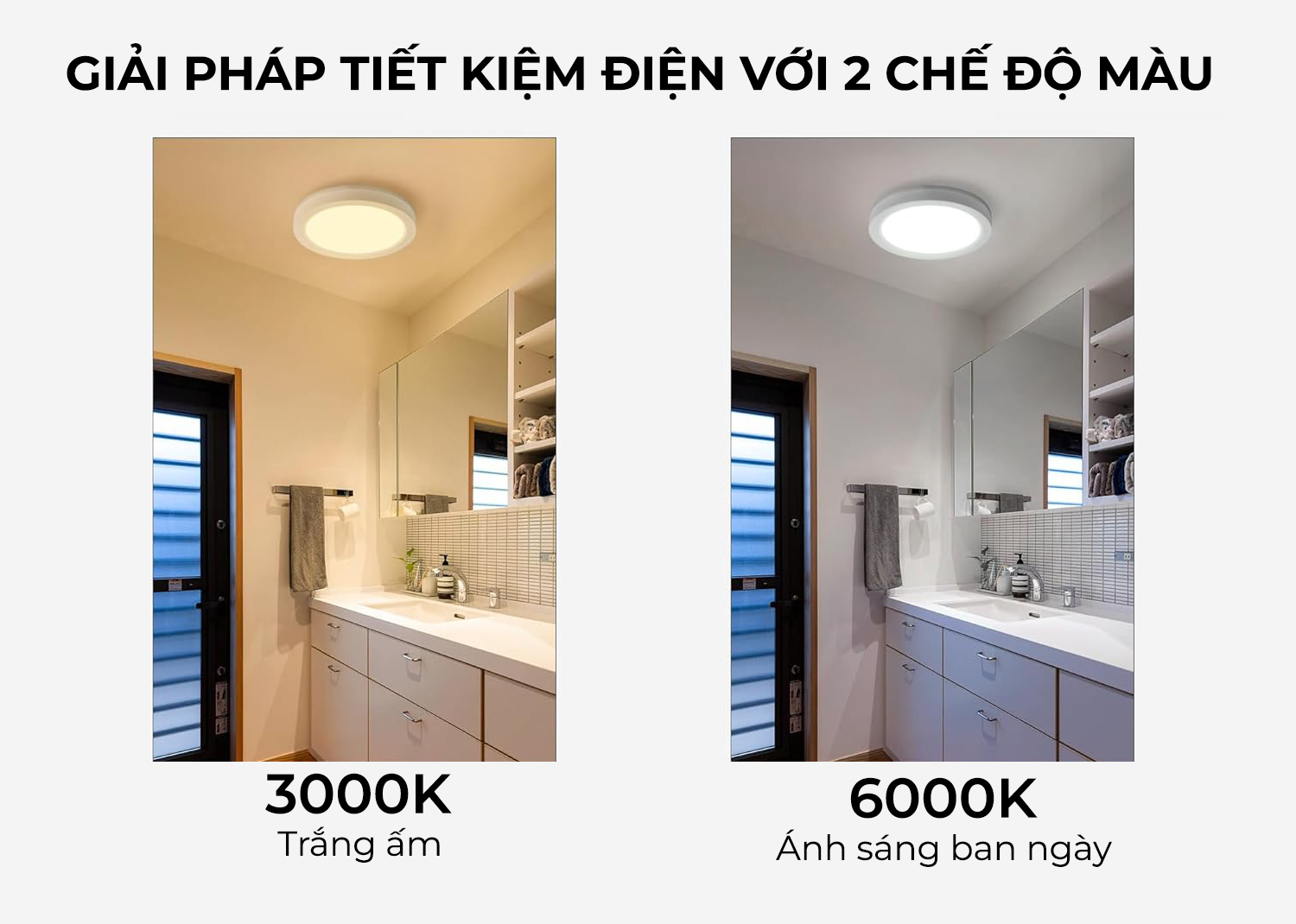 6500K (trắng sáng) → tăng sự tập trung, phù hợp văn phòng, bếp, phòng học.