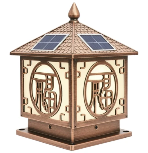 Dòng đèn trụ cổng PL-0309 sở hữu thiết kế đèn lồng truyền thống với màu vàng đồng sang trọng và họa tiết tinh xảo, mang đến vẻ đẹp cổ điển và ấm cúng cho không gian ngoại thất. Đèn hoạt động hoàn toàn bằng năng lượng mặt trời, tự động bật/tắt và có độ bền cao nhờ cấu tạo nhôm đúc nguyên khối kết hợp kính.