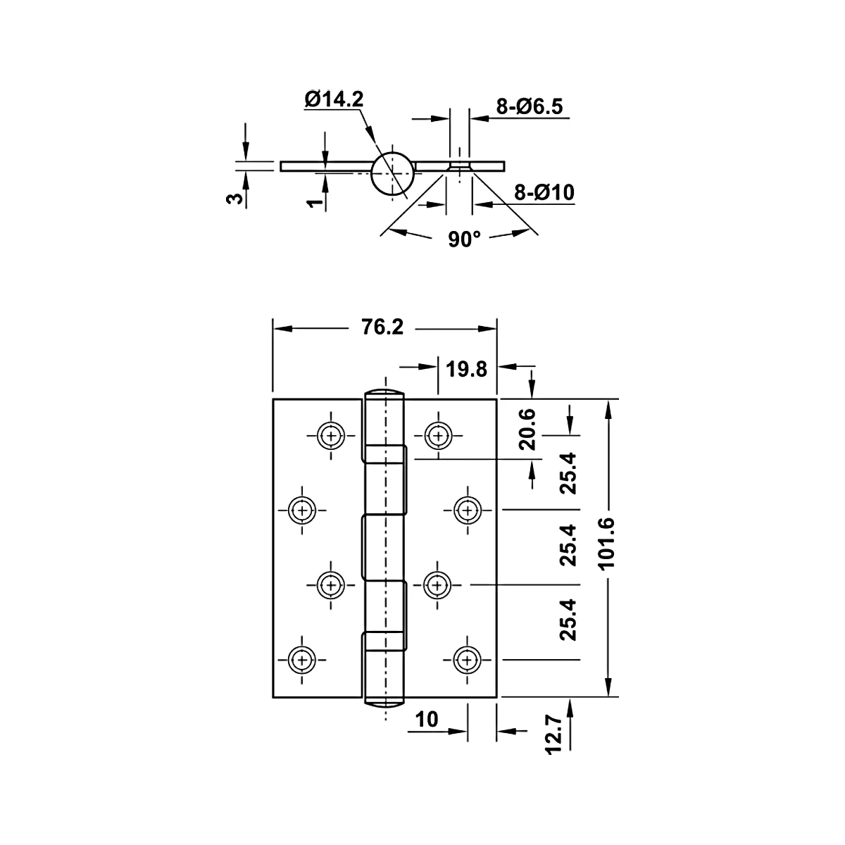 [Hafele] Bản Lề Lá 2Bb 102X76X3Mm, Ss304
