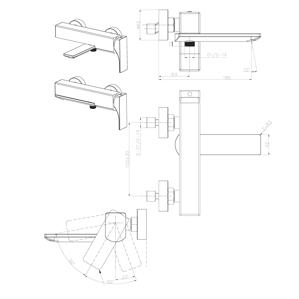Vòi sen 2 đường nước Regal Hafele 495.61.122 thích hợp lắp đặt cho: