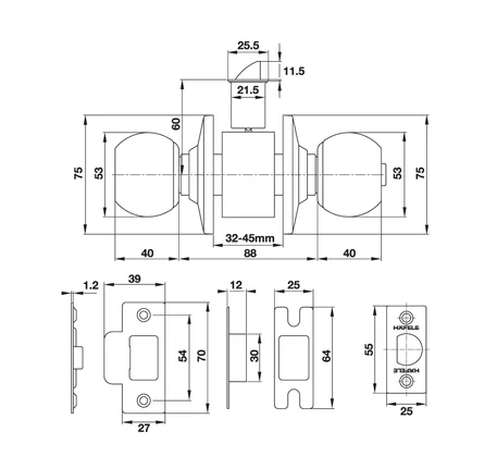 Tay nắm tròn DIY Hafele 489.93.130 thích hợp lắp đặt cho: