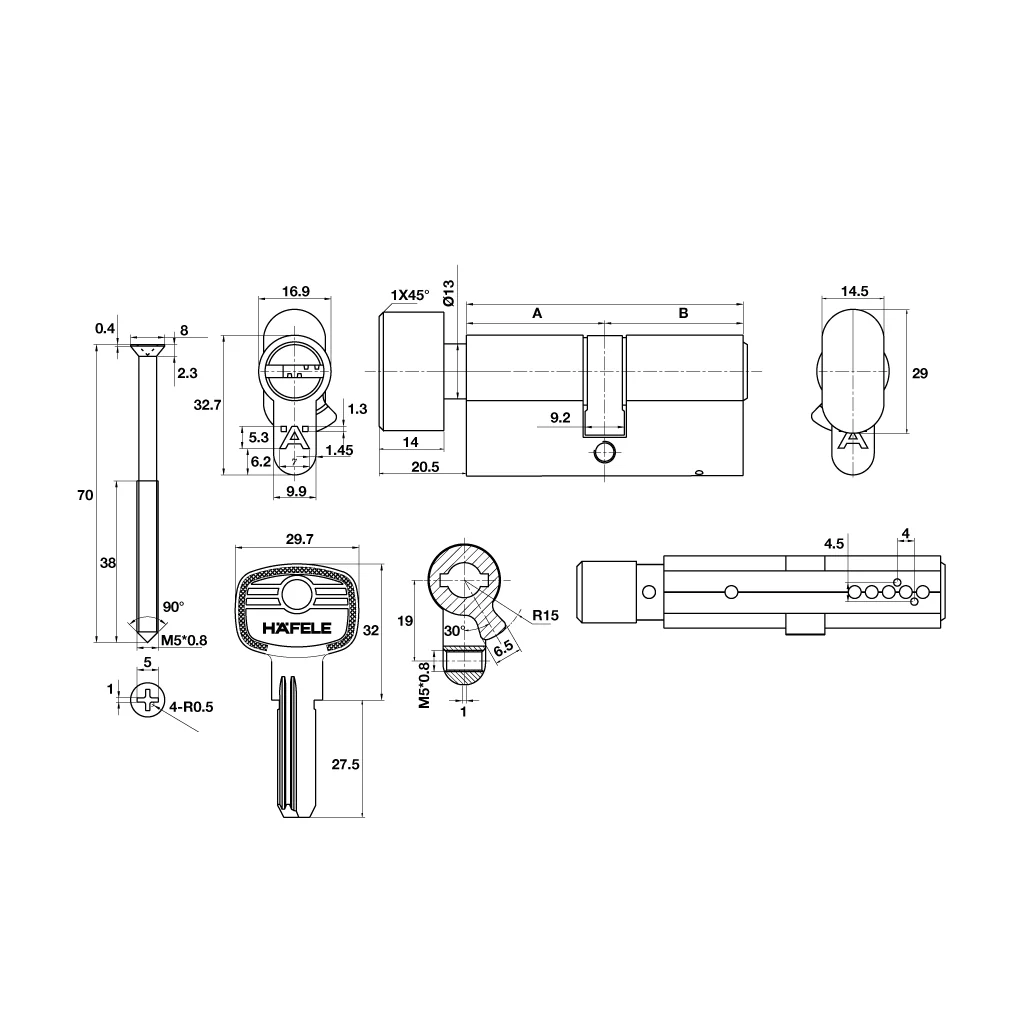 Ruột khóa Hafele 489.56.005 phù hợp lắp đặt cho:
