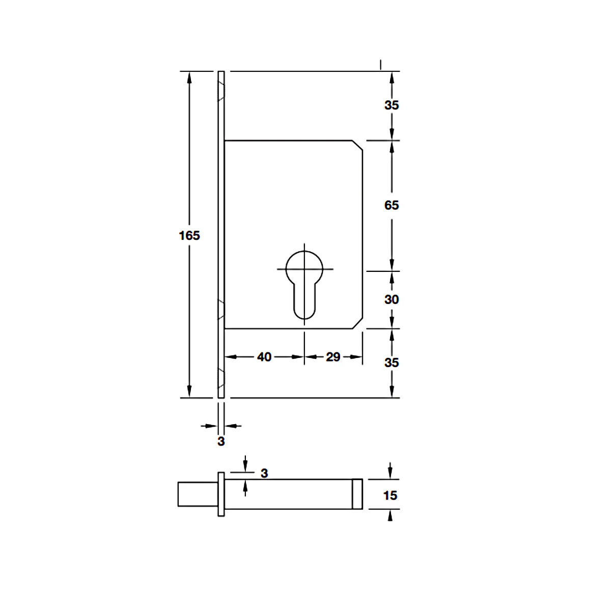 [Hafele] Thân Khoá Cửa Trượt Bs40, Đen 911.26.413