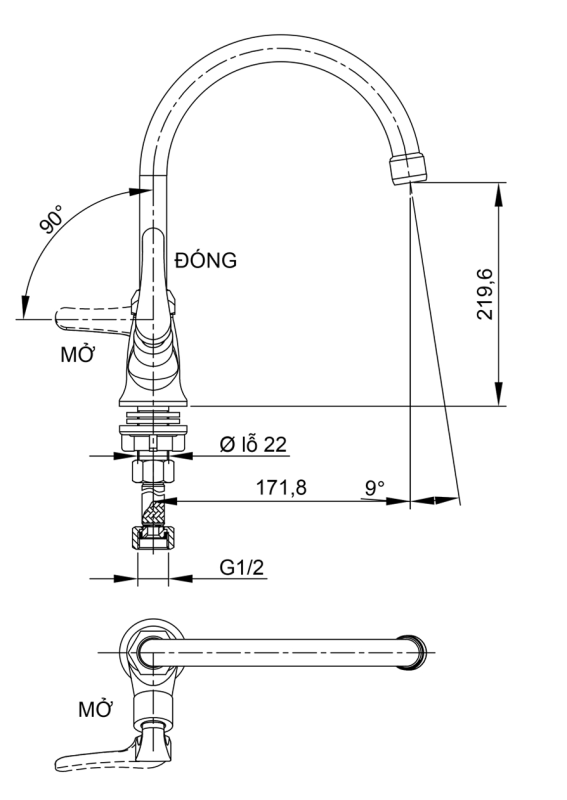 Tay gạt kim loại được thiết kế thẩm mỹ, cầm chắc tay, mang đến thao tác đóng mở nước mượt mà và chính xác. Vòi được trang bị khả năng xoay 360°, giúp việc rửa chén, điều hướng nước hoặc sử dụng với chậu đôi trở nên vô cùng thuận tiện.