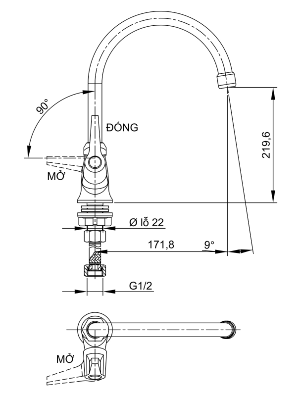 Tay gạt kim loại cao cấp được thiết kế thẩm mỹ, cho thao tác đóng mở nước nhẹ nhàng và chính xác. Đặc biệt, vòi có khả năng xoay 360°, mang lại sự linh hoạt tối đa khi thao tác trong bếp – thuận tiện cho rửa chén, rửa thực phẩm hoặc sử dụng chậu rửa đôi.