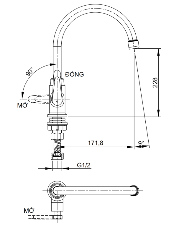 Tay gạt kim loại cao cấp thiết kế tinh tế, cầm chắc tay, mang đến thao tác điều chỉnh nước nhẹ nhàng và chính xác. Thiết kế cần xoay 360° cho phép người dùng linh hoạt thay đổi hướng nước trong quá trình nấu ăn – rửa chén, đặc biệt phù hợp cho chậu rửa đôi hoặc những không gian bếp cần sự đa dụng.