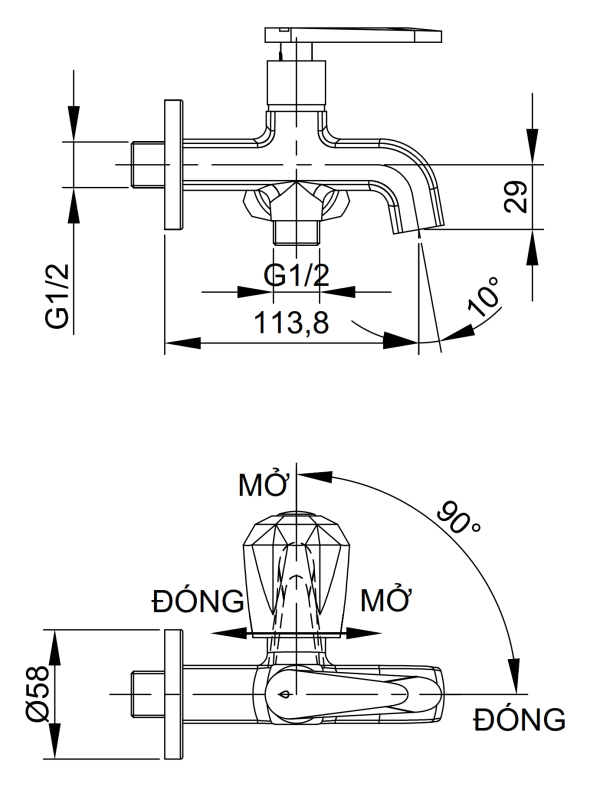 [Luxta] Vòi sen lạnh (Thân vuông, tay gạt và tay vặn) L2114T3
