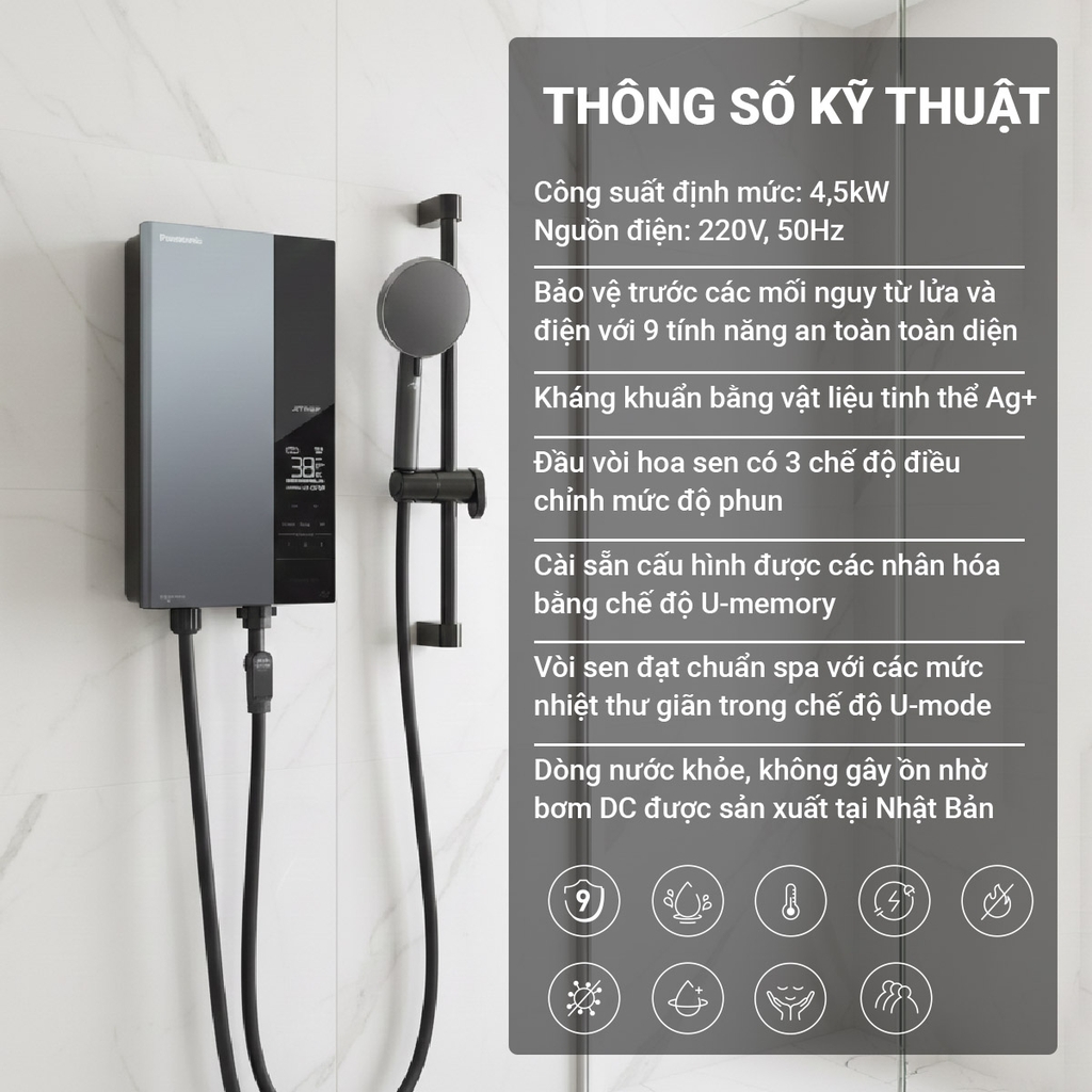 Máy được trang bị 9 tính năng an toàn , bao gồm chống giật, tự ngắt khi rò điện (ELB), cảm biến lưu lượng và cảm biến nhiệt , giúp bảo vệ gia đình bạn tối đa trong quá trình sử dụng.