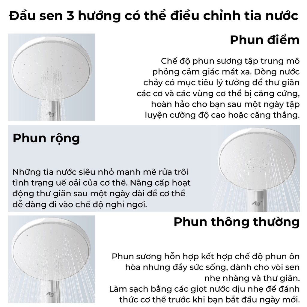 ✅ Pha sen 3 chế độ mang lại trải nghiệm tắm linh hoạt và thư giãn.