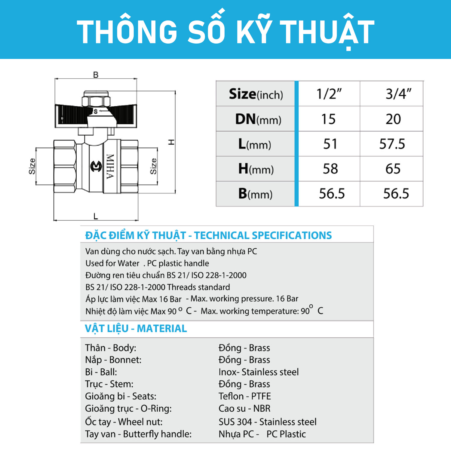 Đặc điểm nổi bật của Van Bi Đồng Tay Bướm MIHA – PN16