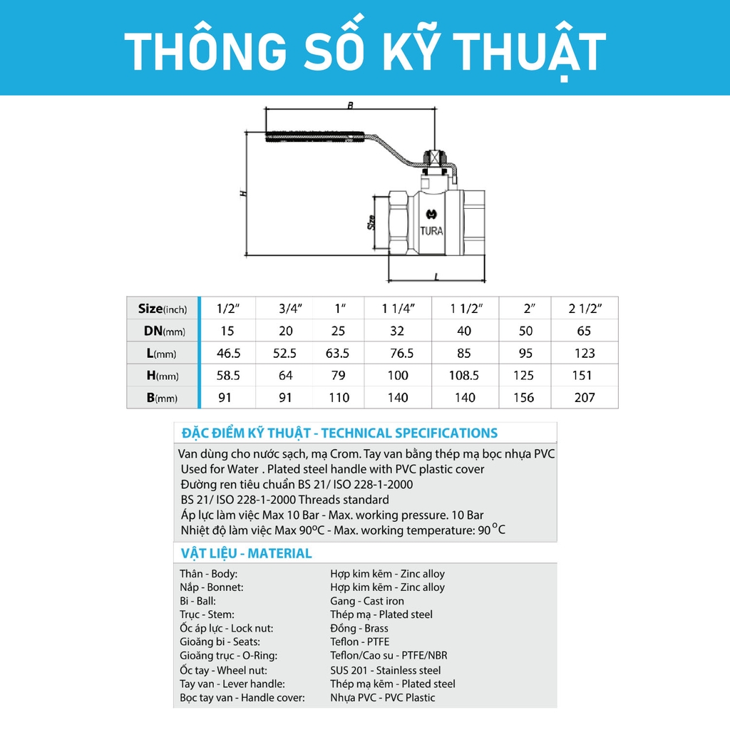 [Minh Hòa] Van bi hợp kim TURA - PN10