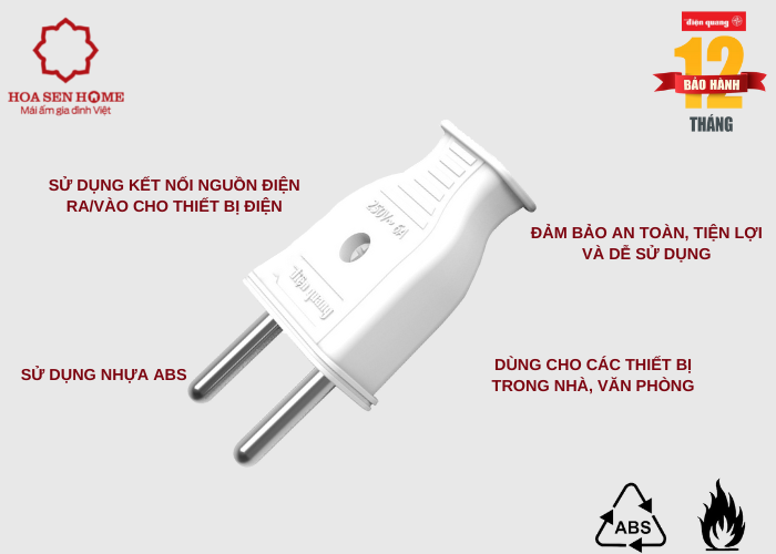An toàn tuyệt đối: hạn chế cháy nổ và rò điện nhờ nhựa ABS và chân cắm chuẩn.