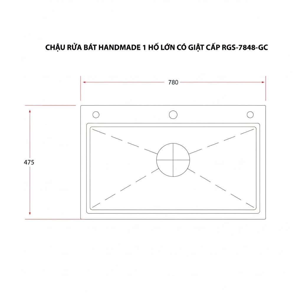 [Rangos] Chậu rửa bát Handmade 1 hố lớn có giật cấp RGS-7848-GC