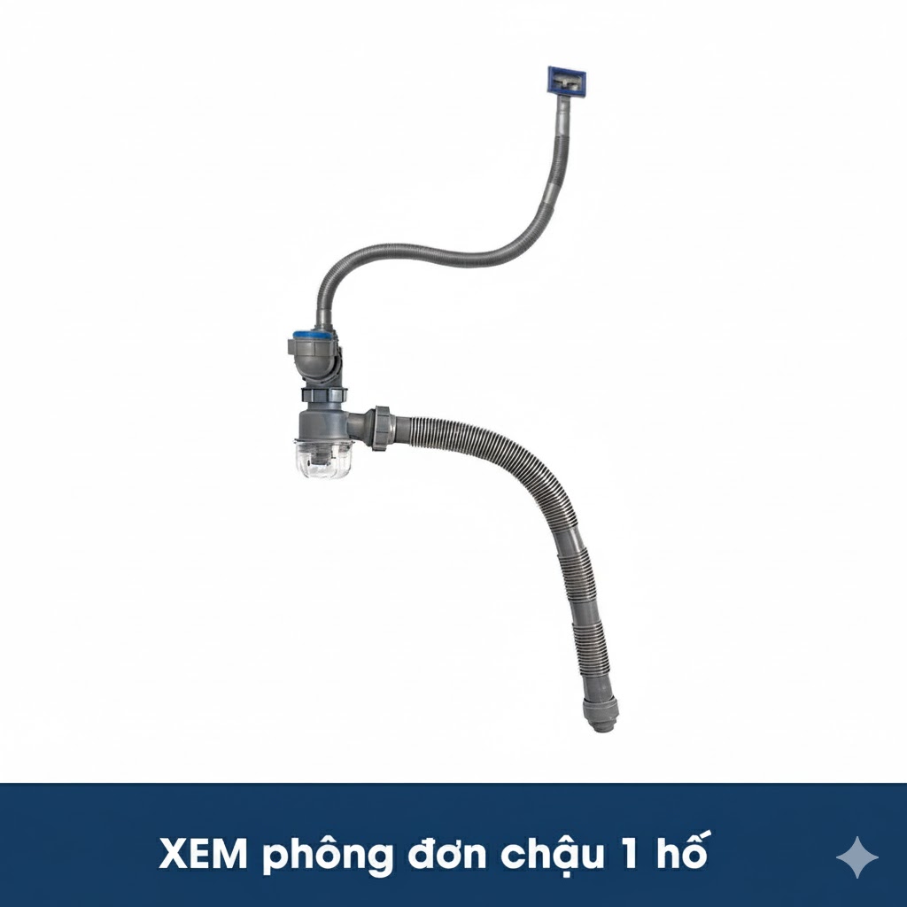 Phụ kiện kèm theo: Bộ xiphông nhựa PP Hàn Quốc, bát lọc rác Ø165 mm, đầy đủ tem mác chứng nhận.