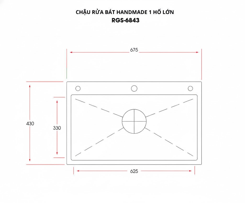 [Rangos] Chậu rửa bát handmade 1 hố lớn RGS-6843