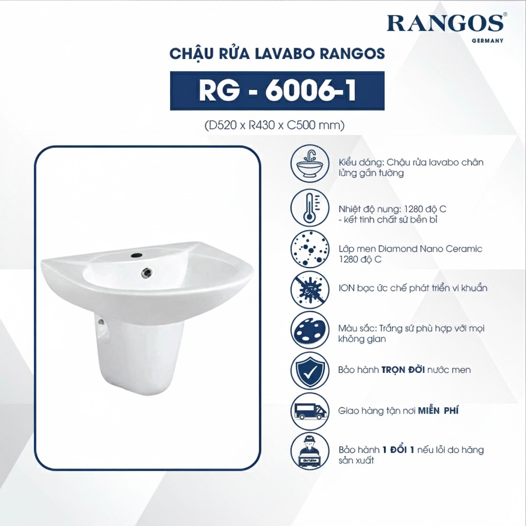 [Rangos] Chậu rửa lavabo chân lửng gắn tường RG-6006-1