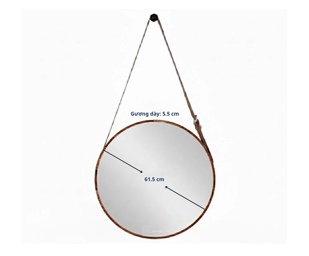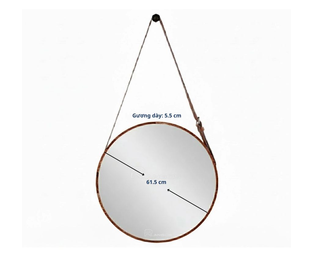 Với kích thước đường kính 615 mm và độ dày 55 mm, gương mang lại sự cân đối, tinh tế, phù hợp cho nhiều không gian từ nhỏ đến lớn. Thiết kế dây đai da bền bỉ tạo nên nét độc đáo, thẩm mỹ cao và tăng chiều sâu cho không gian nội thất.
