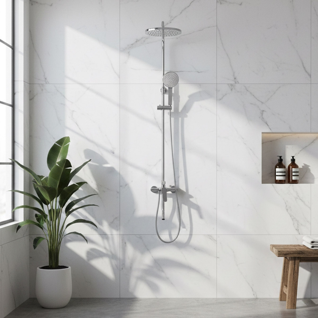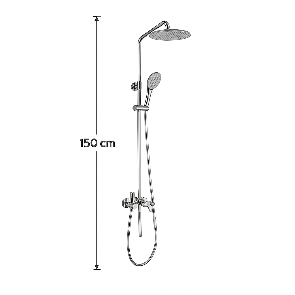 Bát sen đỉnh và bát sen tay được làm từ nhựa ABS cao cấp siêu bền, cho tia nước đều, êm và tiết kiệm nước. Dây sen inox chống xoắn dài 150 cm giúp người dùng thao tác linh hoạt, bền bỉ và an toàn khi sử dụng.