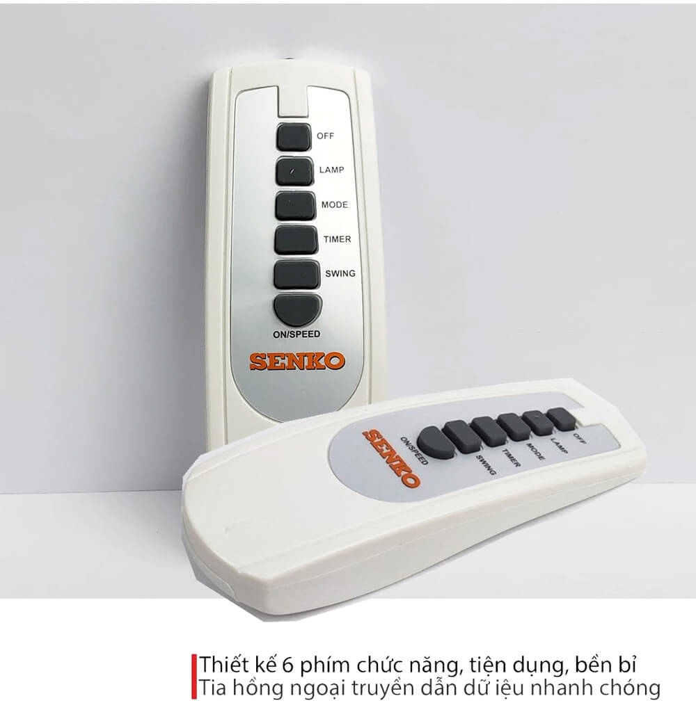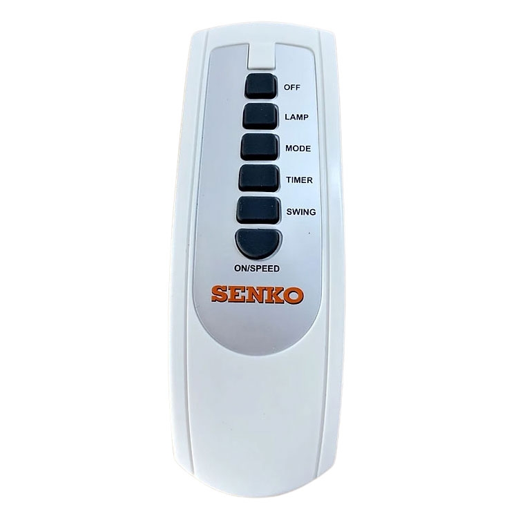 Remote điều khiển từ xa Senko là phụ kiện thay thế chính hãng, tương thích với hầu hết các dòng quạt điều khiển từ xa của Senko như quạt treo tường, quạt trần, quạt đứng và quạt bàn có tích hợp nhận tín hiệu hồng ngoại. Sản phẩm giúp bạn điều chỉnh Bật/Tắt, Tốc độ gió, Hẹn giờ, Chế độ gió tự nhiên… chỉ với một thao tác, không cần di chuyển.
