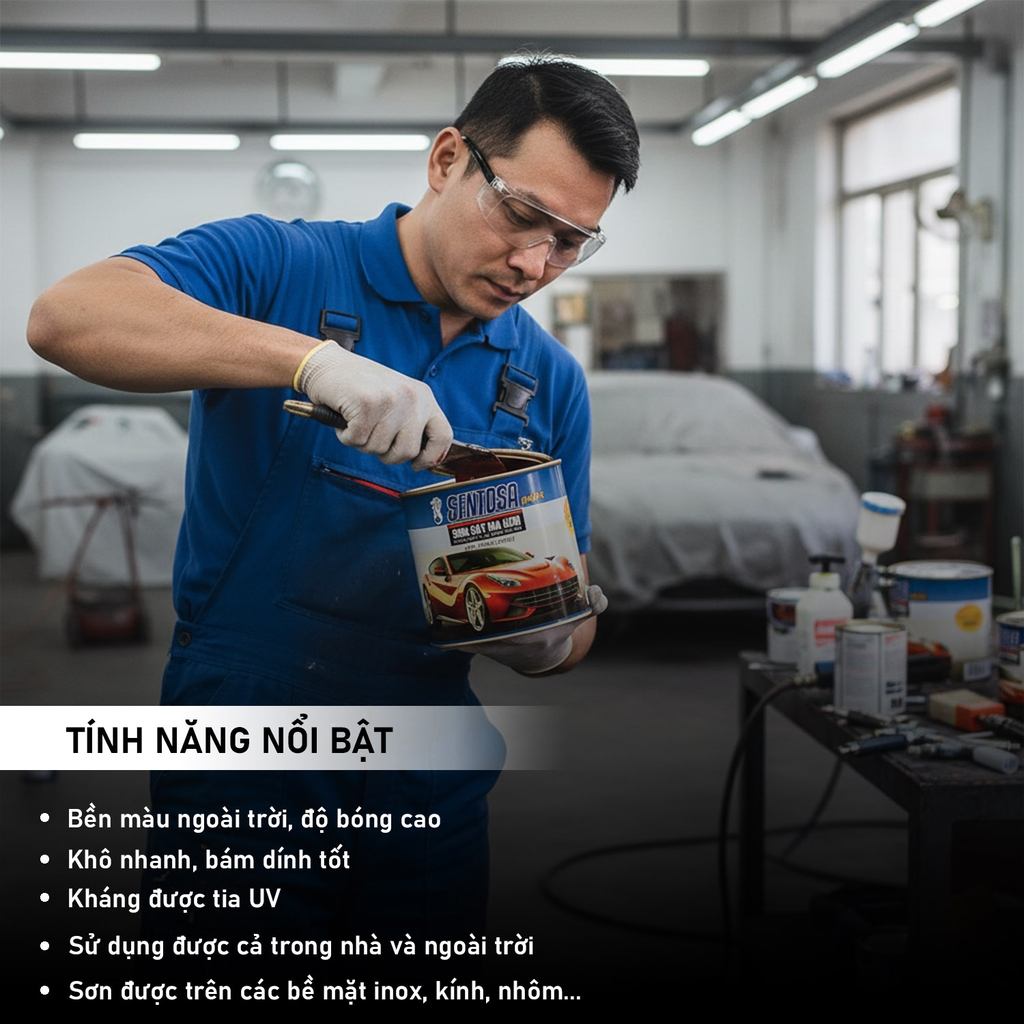 Sơn Sentosa 1 thành phần là dòng sơn phủ sắt mạ kẽm cao cấp, được sản xuất theo công nghệ tiên tiến Châu Âu, nổi bật với màng sơn thông minh có khả năng bám dính vượt trội trên các bề mặt khó sơn như inox, nhôm, kính, kẽm, gỗ và sắt.