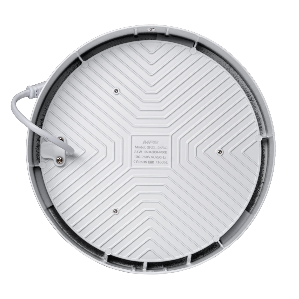 Đèn Downlight nổi tràn viền 3in1 24W MPE SRDL sở hữu thiết kế viền siêu mỏng tinh tế, tạo hiệu ứng ánh sáng tràn viền nổi bật, mang lại sự sang trọng cho mọi không gian. Sản phẩm tích hợp 3 chế độ ánh sáng trong 1 đèn: Trắng – Trung tính – Vàng, giúp thay đổi linh hoạt theo từng mục đích sử dụng.