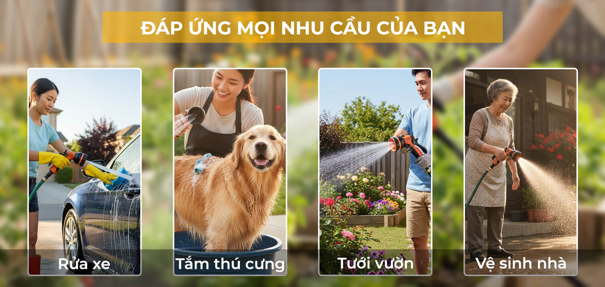 ✅ Dùng tuyệt vời cho: Tưới cây 🌿 | Rửa xe 🚗 | Vệ sinh sân vườn 🧼