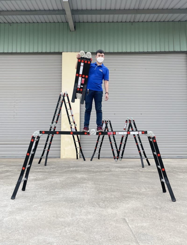 Nikawa tiếp tục nâng cấp dòng thang gấp 4 khúc với model NKG-46C, mang đến trải nghiệm làm việc an toàn, linh hoạt và bền bỉ hơn. Đây là chiếc thang đa năng có thể dễ dàng “biến hình” thành nhiều dạng: chữ A, I, U, M,… đáp ứng mọi nhu cầu từ gia đình đến công trình.