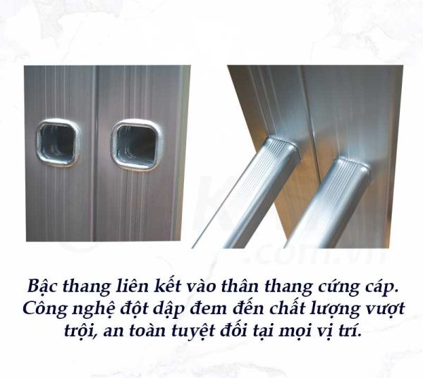 Thiết kế: Chân thang bọc cao su chống trượt, tăng độ bám trên nhiều bề mặt.