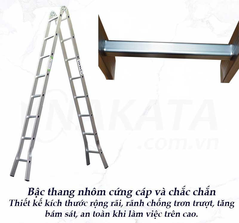 Thang Nhôm Khóa Tự Động A 3m Nakata VN30A được sản xuất từ hợp kim nhôm cao cấp, trọng lượng nhẹ nhưng có khả năng chịu lực tốt. Cơ chế khóa tự động thông minh giúp thang cố định chắc chắn khi sử dụng, đảm bảo an toàn tối đa cho người dùng.
