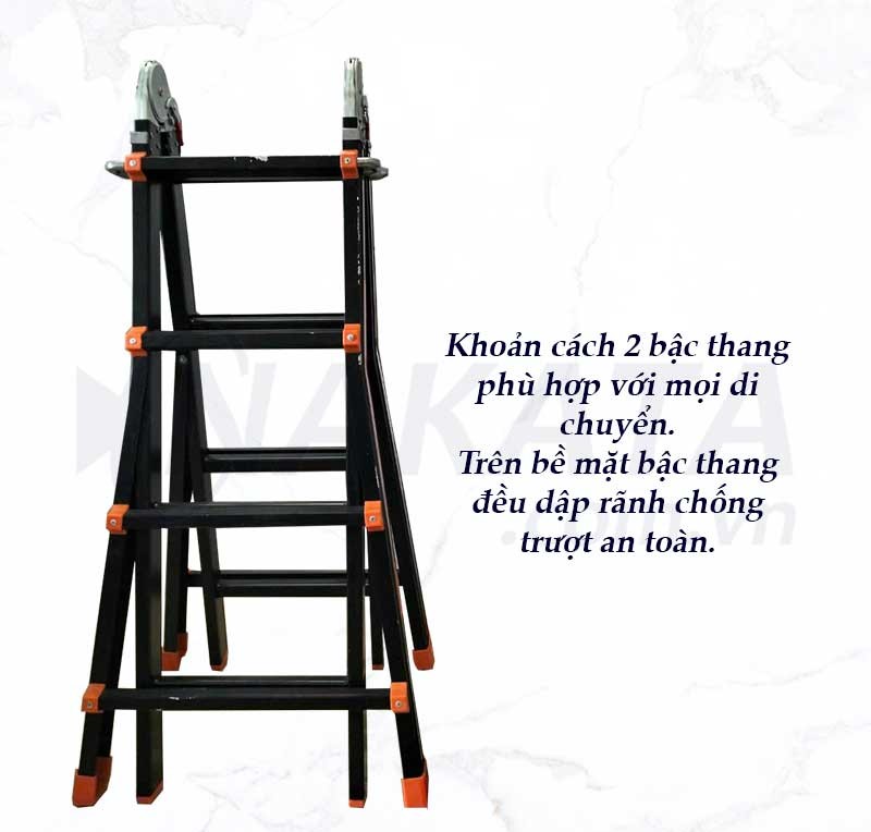Đa năng, linh hoạt: Có thể sử dụng ở dạng chữ A hoặc dạng rút thẳng chữ I, dễ dàng điều chỉnh chiều cao để phù hợp với mọi công việc.