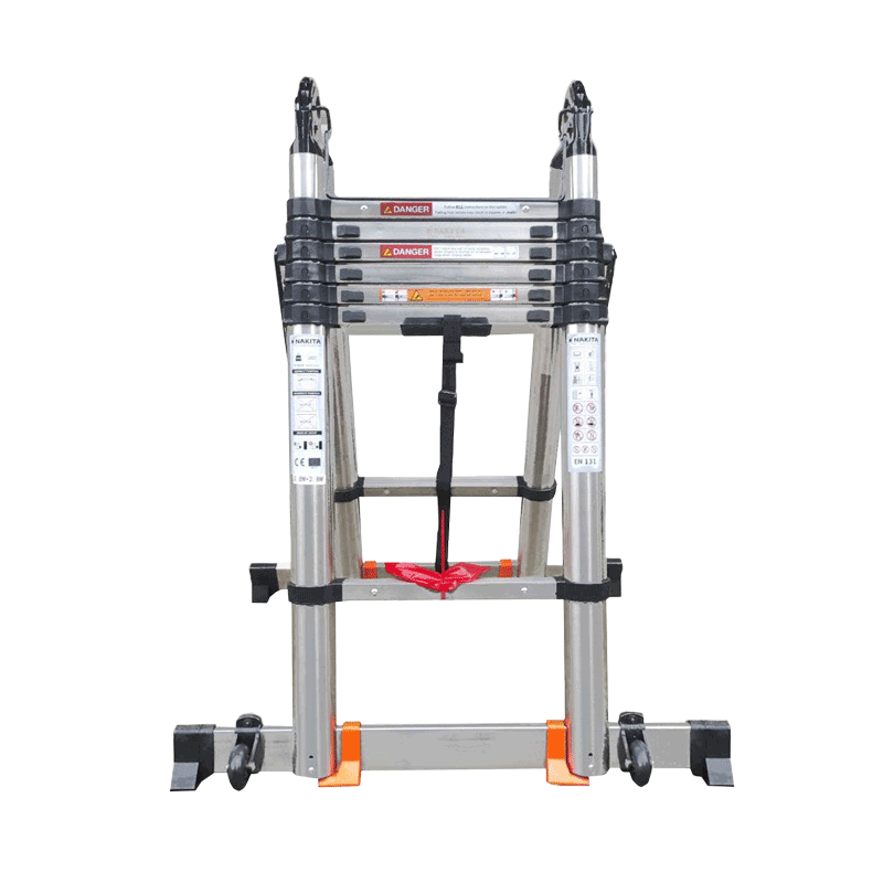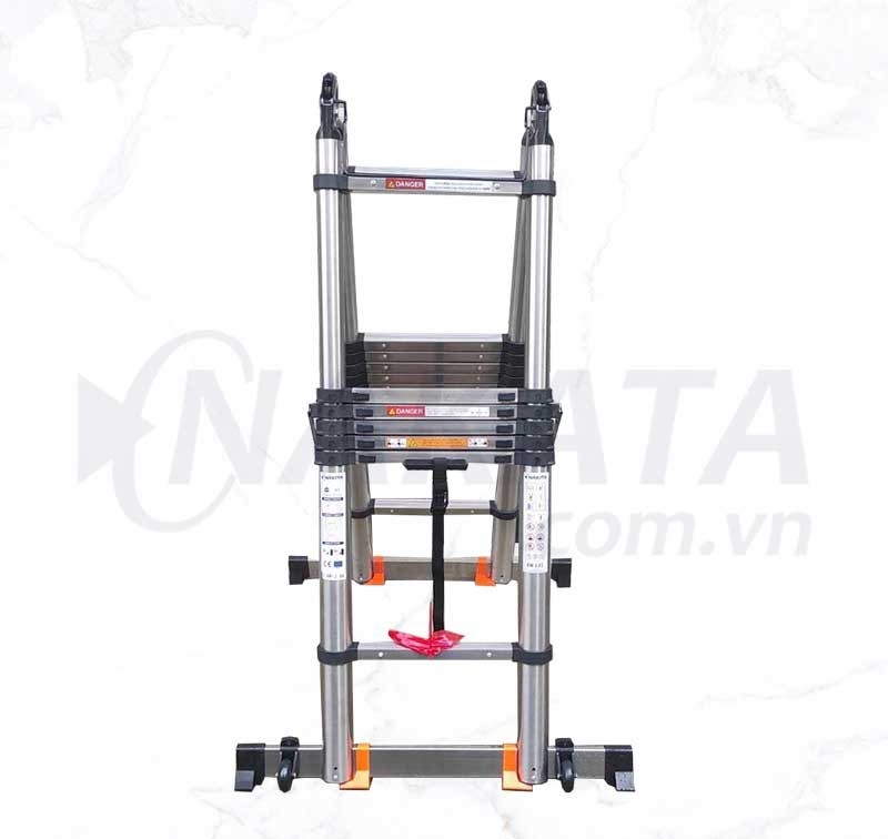 Thang rút đôi inox Nakita TM250 được thiết kế theo dạng chữ A chắc chắn, giúp bạn làm việc ở nhiều địa hình khác nhau mà không cần điểm tựa.