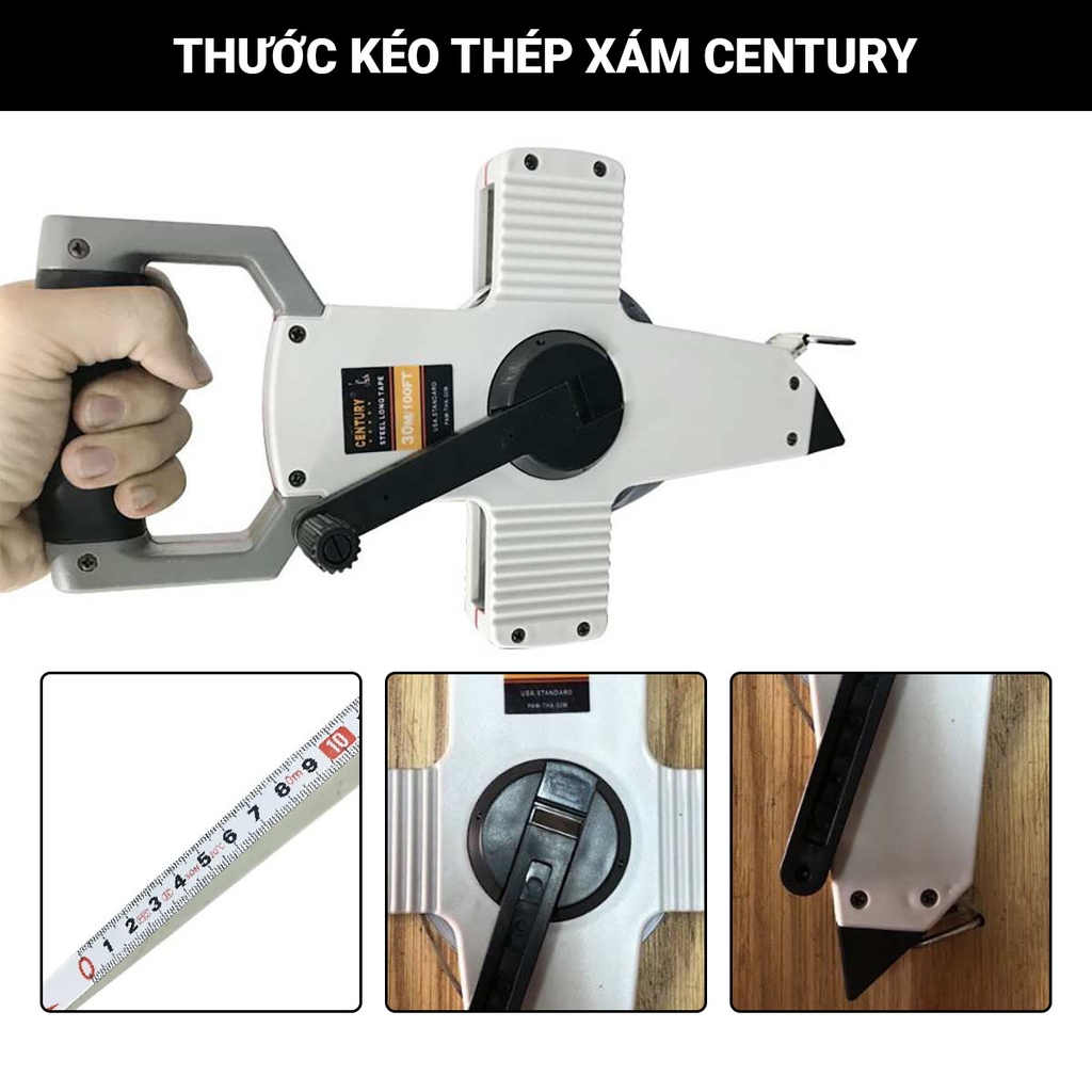 Thước thép xám Century là dòng thước đo chiều dài chuyên dụng, được thiết kế cho ngành xây dựng, cơ khí, điện nước, đo đạc hiện trường và khảo sát công trình. Sản phẩm được trang bị lưỡi thước bằng thép cao cấp cùng đầu mũi bọc thép chắc chắn, giúp đảm bảo độ chính xác cao, đồng thời mang lại độ bền vượt trội trong quá trình sử dụng.